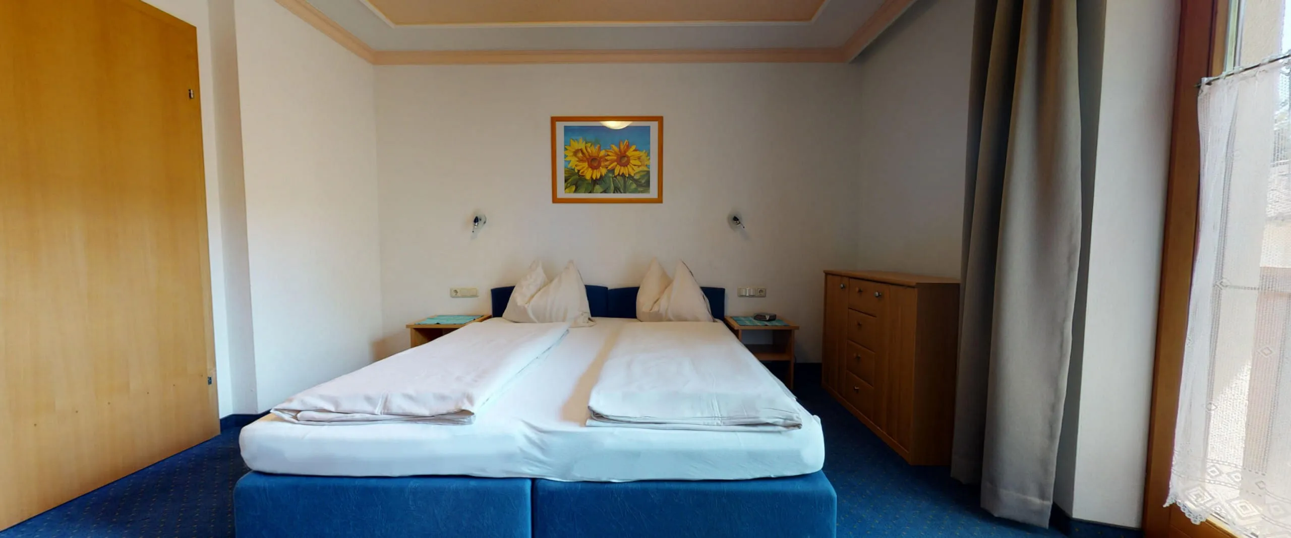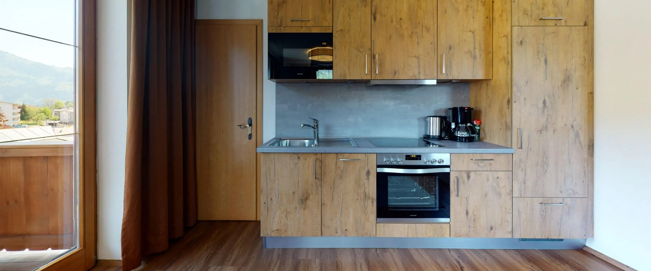 2 Schlafzimmer, 1 großes Wohnzimmer mit Essecke, Wohnecke mit ausziehbarer Schlafcouch für 2 Personen (normale Bettgrösse), Küchenzeile mit E-Herd, Geschirrspüler, Kühl-/Gefrierschrank, Kaffeemaschine, Vorraum mit Garderobe, Dusche/WC, SAT-TV, Telefon, Radiowecker, Zimmersafe, W-Lan, Balkon