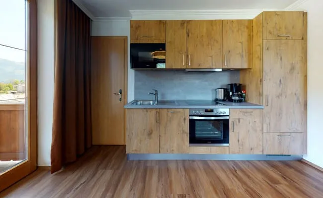 2 Schlafzimmer, 1 großes Wohnzimmer mit Essecke, Wohnecke mit ausziehbarer Schlafcouch für 2 Personen (normale Bettgrösse), Küchenzeile mit E-Herd, Geschirrspüler, Kühl-/Gefrierschrank, Kaffeemaschine, Vorraum mit Garderobe, Dusche/WC, SAT-TV, Telefon, Radiowecker, Zimmersafe, W-Lan, Balkon